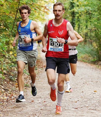 "Es ist doch wie verhext ... immer wieder Zweiter!" So fragte sich Oli nach den vielen zweiten Plätzen - wohlgemerkt insgesamt - und kam zur Erkenntnis, dass ihm die Spritzigkeit bei "kürzeren Wettkämpfen" hinten raus fehle angesichts der priorisierten langen Wettkampfstrecken. Das musste er zuletzt beim Hesselberglauf erfahren, wo er als Titelverteidiger angetreten war. Bis zum Plateau konnte er mithalten, aber auf dem Plateau verlor er trotz Kampf langsam den Anschluss an den jüngeren Spitzenreiter. Auf seiner eigenen Trainingsstrecke im Fürther Stadtwald sollte das anders werden. Wieder saß (bzw. lief) ein junges Talent des LAC Quelle Fürth ihm im Nacken. Aber dann hat es doch geklappt, denn er hat sich rechtzeitig genug abgesetzt. Bei der Siegerehrung gesamt genoss er seinen Erfolg, auch unter dem Beifall seiner Familie.