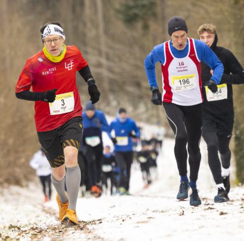 Selten sind neben Jutta auch Joachim, Olaf und Oli zusammen am Start und sie zeigten alle starke Leistungen unter nicht so einfachen Bedingungen, was ihre gelaufenen Zeiten belegen. Die 10 km in Bräuningshof waren eher 10,5 km und die 200 Höhenmeter auf den zwei Runden auf rutschigem tiefgefrorenem Schneeboden waren wohl die Gründe, auch für Jörg, der es aber sowieso gemütlich anging. Die Temperatur klar unter 0°C war für alle keine Ausrede. Jutta, Joachim und Olaf (Ich bin mit meinem 15. Platz als Wiedereinstieg absolut zufrieden. Und ein paar Sekunden vor Joachim zu sein, ist immer eine Ehre!) waren trotzdem als Erste auf dem Podest. Oli hätte sich gerne den Gesamtsieg geholt, aber seine sonst schnellen (glatten) Wettkampfschuhe machten ihm besonders am Ende des Laufs, den er länger angeführt hatte, einen rutschigen Strich durch die Rechnung. Dabei hatte die Veranstalterin vorab explizit auf die Wahl von geeignetem Schuhwerk hingewiesen. So musste sich Oli zwar wieder mit Gesamtplatz zwei zufrieden geben, war aber trotzdem in Silvesterfeierlaune.