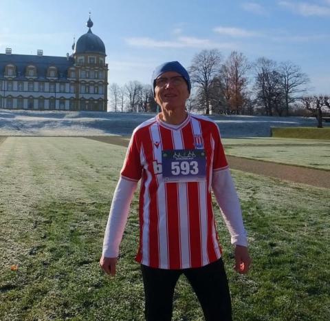 Frostig war es, richtig knackig kalt - vor allem auf den tiefgefrorenen Forstwegen im Hauptsmoorwald und über den mit Rauhreif bedeckten Wiesen bei Memmelsdorf, wo bei eisigem Wind der 40. Schloßlauf mit 118 Frauen und 257 Männern im Ziel (Teilnehmerrekord) ausgetragen wurde. Gleich vorneweg: Ich hatte durchaus die ehrgeizige Hoffnung, in meiner Altersklasse M65 unter die ersten drei zu kommen. Doch mit einer Zeit von 59:23 min lief ich dann doch "nur" - als einer von 13 M65-Teilnehmern - auf den sechsten Rang und auf Platz 171 unter allen Männern. Fast genau so schnell wie im Vorjahr, als ich mit 59:21 min ins Ziel kam.