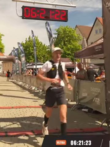 Typisch beim Trail ist das Verlaufen, besonders wenn man es eilig hat. Dann wird die Strecke noch länger! Das erging Oli wieder so, aber auch anderen, nicht nur in der Spitzengruppe. Oli und Gertrud sind letztlich wieder ein tolles Rennen gelaufen und sie wurden im Ziel gebührend fränkisch empfangen, Glückwünsche an beide!
